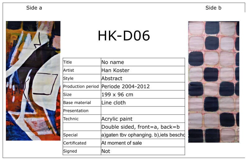 Doeken worden in principe tegen de wand gehangen. Meestal zijn ze 2-zijdig bewerkt. Dat betekent dat je maar 1 zijde tegelijk kunt zien. Vind je beide zijden interessant dan kun je ze af en toe omdraaien om ook van die andere zijde te genieten. Heeft u aankoop-interesse of wilt u meer informatie, neem dan gerust contact op. Een bod doen mag natuurlijk ook.